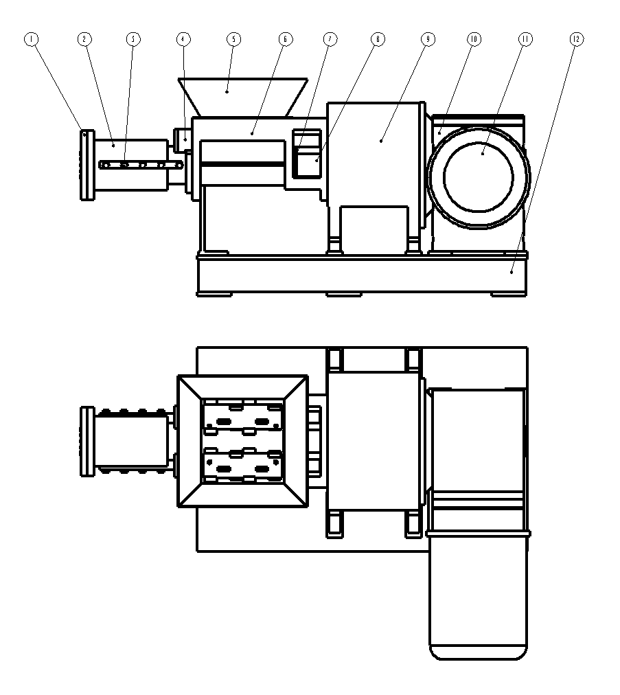 6 擠出筒安裝有自動清料系統(tǒng),可實現(xiàn)難擠出物料的加工,不容產(chǎn)生抱桿現(xiàn)象。